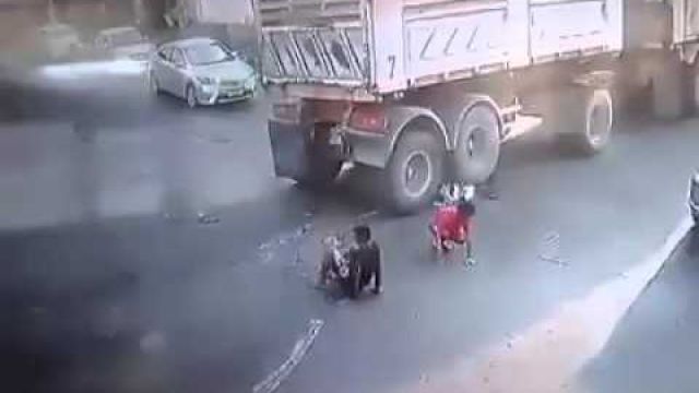 ปาฏิหารมีจริง‬!! 2หนุ่ม ขี่มอไซค์เกือบโดนสิบล้อกระชากวิญญาณ (11'มี.ค.59) ...(เป็นข่าว)