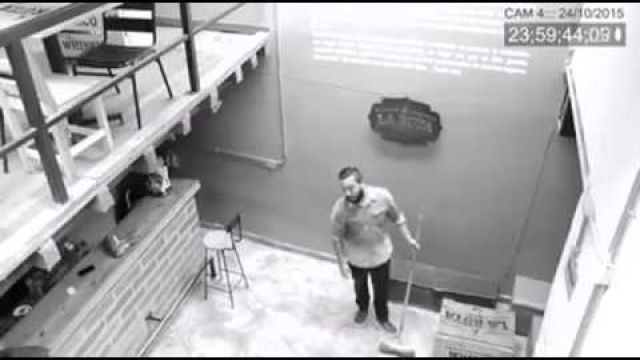 คลิปสยอง ฝรั่งกวาดพื้นอยู่ดีๆเก้าอี้เลื่อนเอง