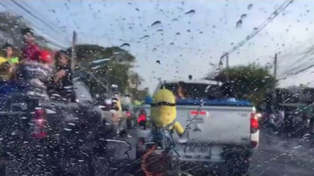 Idea เจ๋ง มินเนียนฉีดน้ำ!!. แทนคนขับไม่เปียก!!..(เป็นข่าว)
