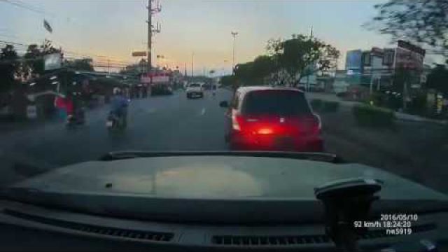 วินาทีไล่ตาม!!‬ เก๋งแดงไม่ติดแผ่นป้ายทะเบียน "ถอยมาชน" แล้วซิ่งหนี !!