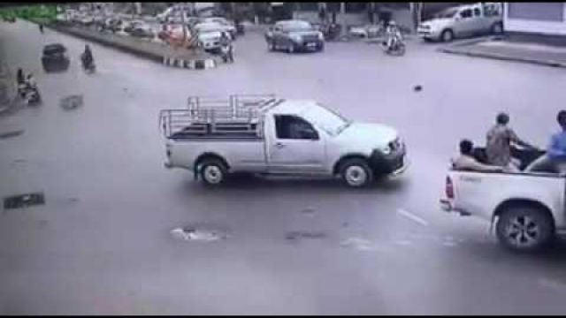 วินาที..มอไซค์พุ่งข้ามฝั่ง'..โดนเก๋งดำชนแล้วชิ่งหนีหาย!! ‪#‎แยกบุญสม‬...คลิปข่าว (Thai News Clip)