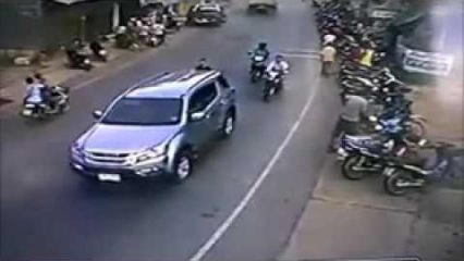 มอไซค์พุ่งตรง' ไม่ได้มองซ้ายขวา เกือบโดนสิบล้อกิน!! @พัทยา‬