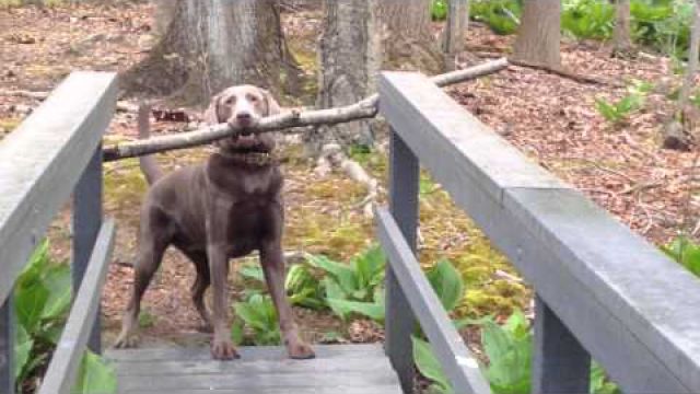 น้องหมาแสนรู้ คาบไม้ข้ามสะพาน...