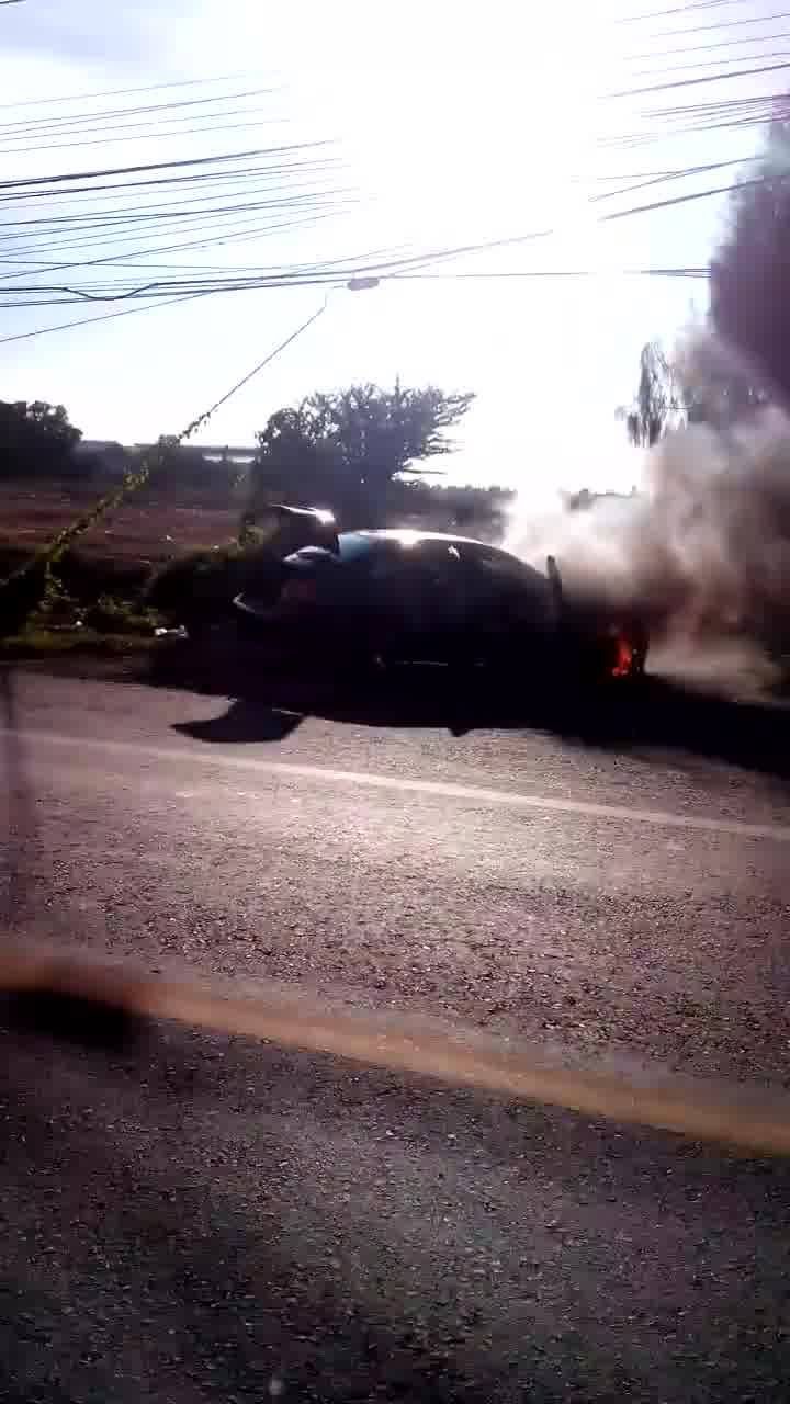 รถติดแก๊สไฟไหม้ เช้านี้ที่–#ตลาดปองพล [29/5/58]
