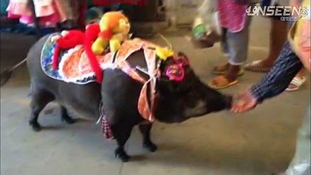 หมูป่า มารวย เดินช่วยหลวงพ่อบิณฑบาต