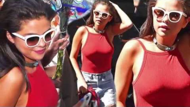 Selena Gomez โชว์เซ็กซี่อีกแล้วใส่เสื้อยืดสีแดงโนบรา