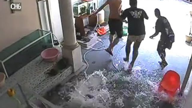 ตู้ปลาแตก วิ่งหนีกระเจิง ผมนี่ถือจานข้าววิ่งเลย