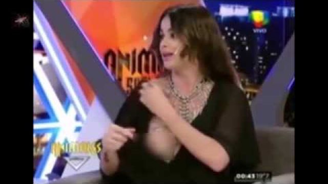 นักแสดงสาว ไม่ทันระวังเต้าหลุดจุกโผล่ ขณะอัดรายการ