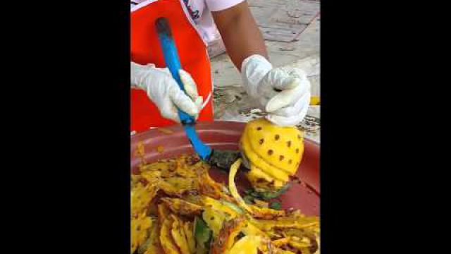 ปลอกสัปรดด้วยมีดกรีดยางไวมากๆเพราะเคยกรีดยางมาก่อน
