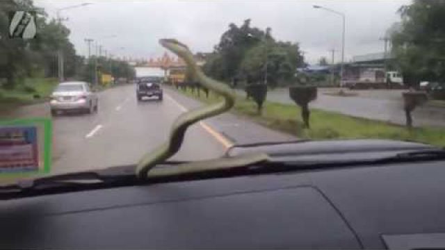 สาวๆ ระทึกกรี๊ดแตก! เจองูโผล่ร่วมทางหน้ารถ ถนนมิตรภาพ ขอนแก่น-บ้านไผ่