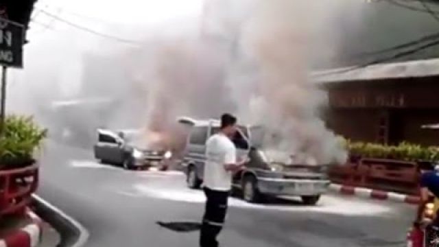 อีกมุม!! รถตู้แก๊สรั่วไฟไหม้ รถคันหลังโดนลูกหลงไฟไหม้ไปด้วย 1 คัน จ.นครศรีธรรมราช